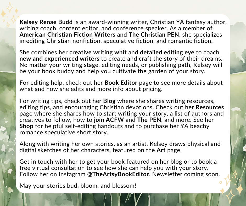 Check out my Resources Page of an ever-growing list of nonfiction books, bloggers, and Booktubers I recommend and see how to join ACFW and The Christian PEN and how to attend PENCON, the only Christian editors’ and proofreaders’ conference.