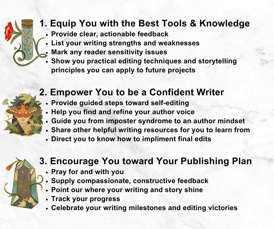 For finished or mostly finished manuscripts and if you’ve had a publisher or an agent say your manuscript needs some help or to adjust the word count but you’re not sure how and would like some direction.